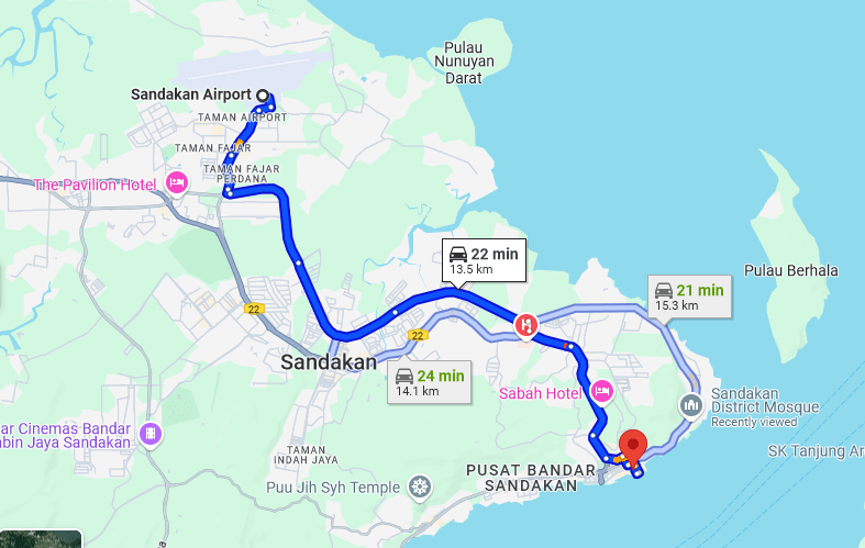 Dall’aeroporto di Sandakan alla parte costiera sono circa 20 minuti di macchina.